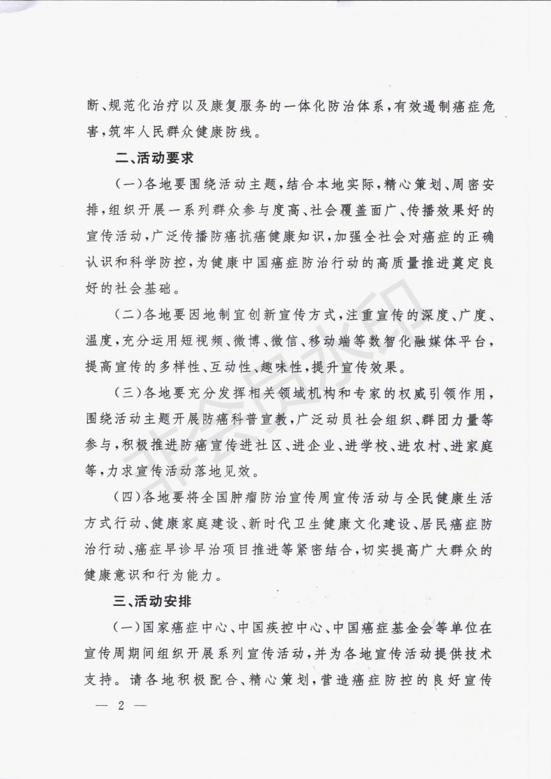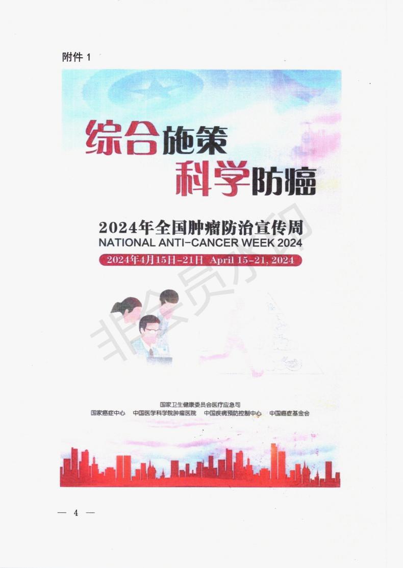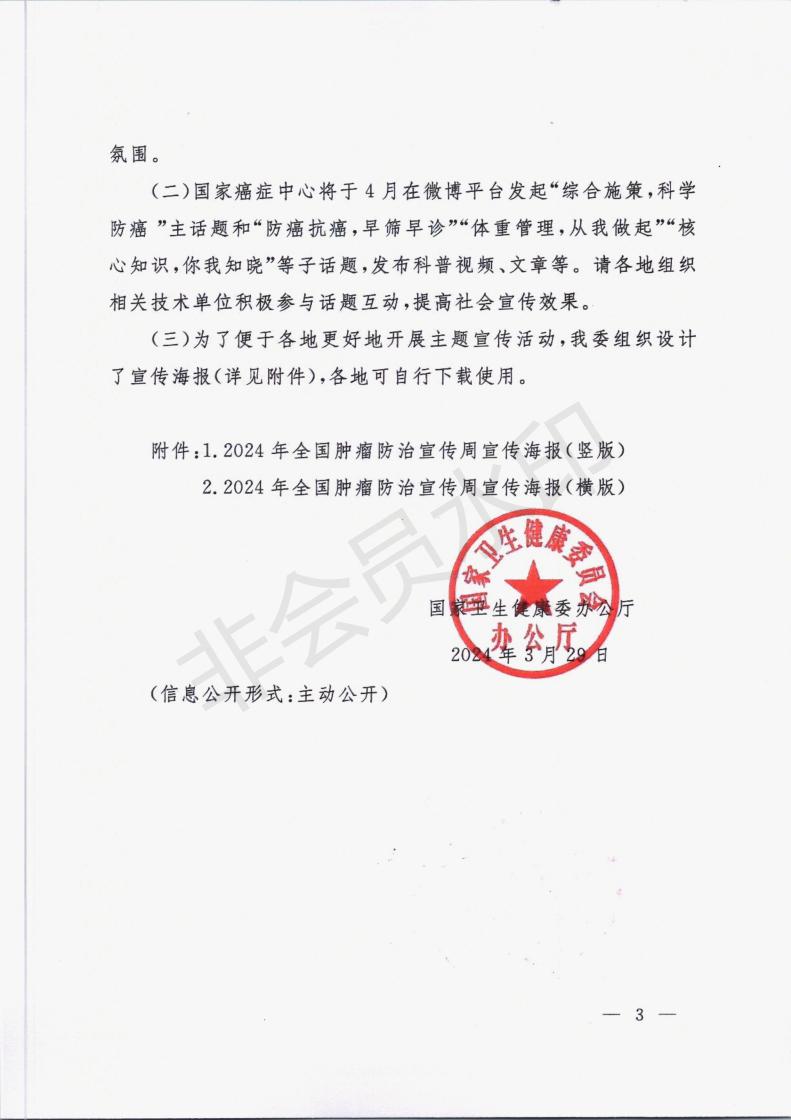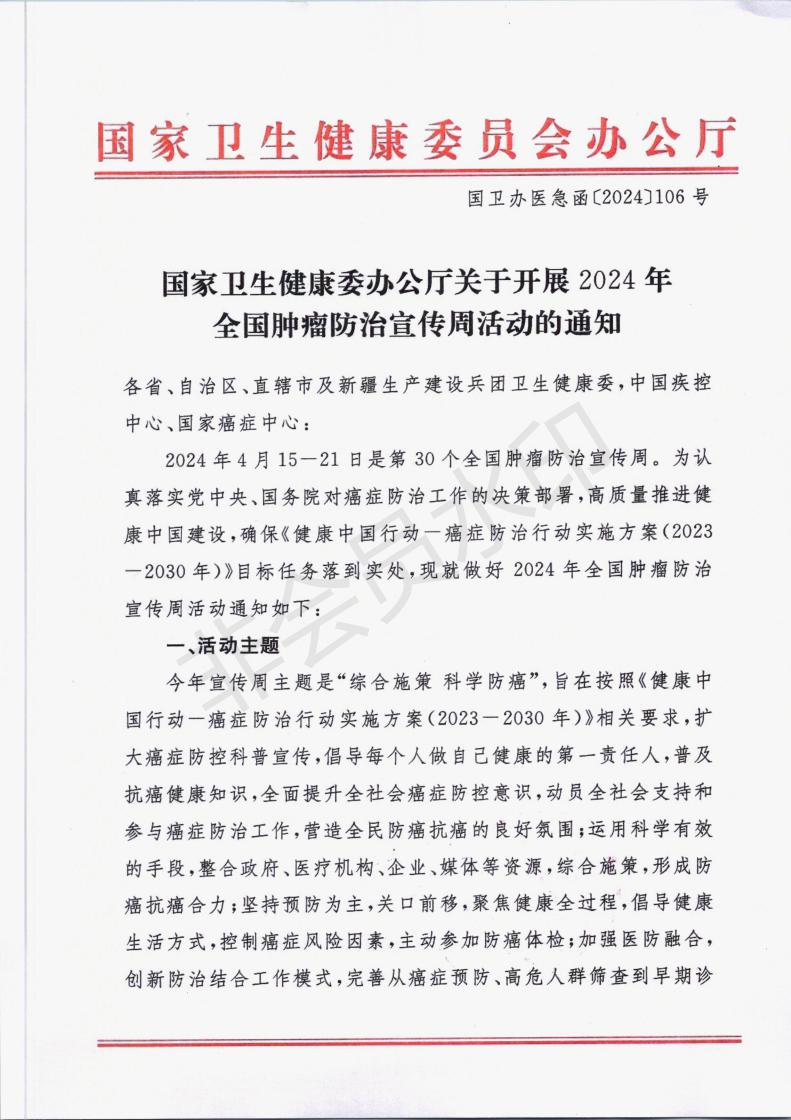 國(guó)家(jiā)衛生(shēng)健康委辦公廳關于開(kāi)展2024年(nián)全國(guó)腫瘤防治宣傳周活動的(de)通(tō¥ng)知(zhī)